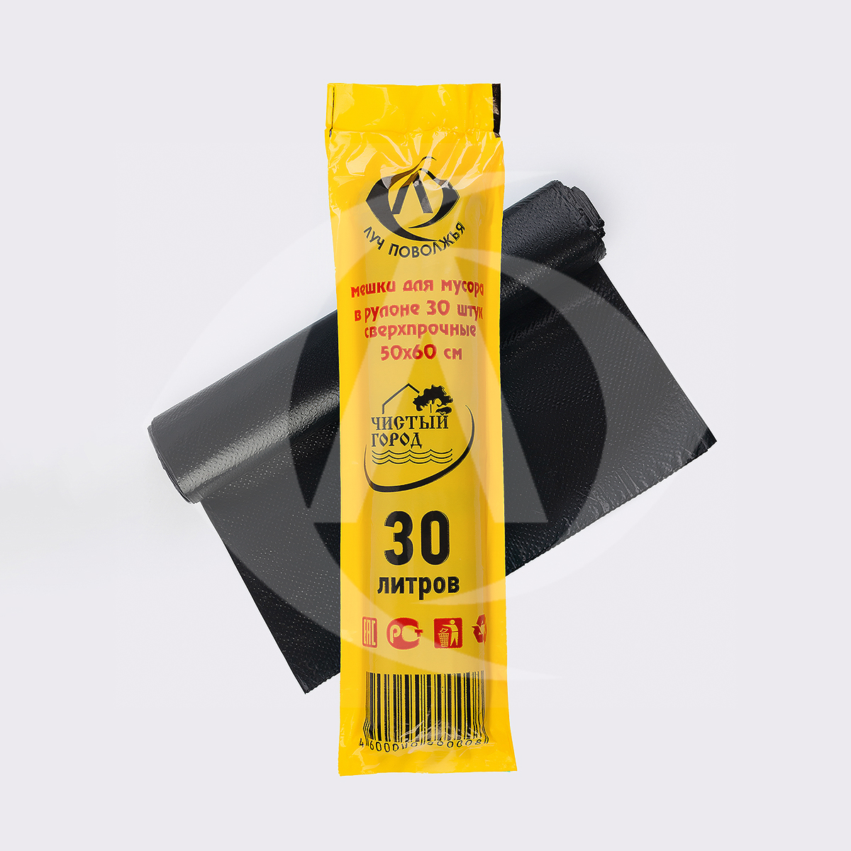 Предлагаем мусорные мешки в рулоне 30 литров оптом и в розницу по самым выгодным ценам. Данная продукция имеется у нас в наличии, поэтому мы организуем для вас оперативную поставку любых необходимых объемов продукции. В одной пачке 30 пакетов, они имеют ширину 47 см и длину 68 см, толщина пленки составляет 12 мкм. Такой пакет с легкостью выдерживает грузы до 7 кг. Изделия изготавливаются из вторичного сырья собственного производства, отличаются высокой надежностью, прочностью и прекрасным качеством исполнения.